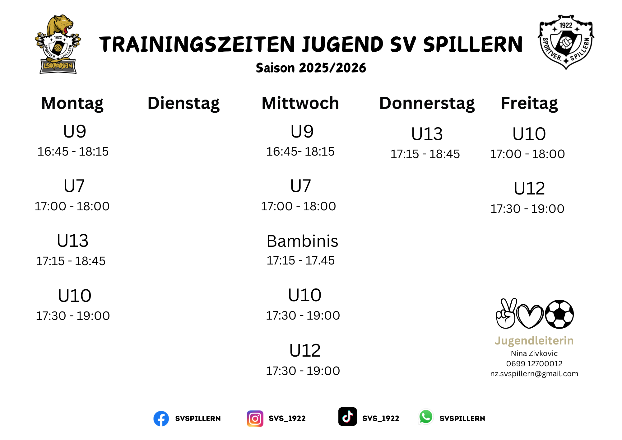 Bitte wenden Sie sich an den zuständigen Trainer oder kommen Sie einfach zu einem Kontakt: ZIVKOVIC Nina 0699/12700012 |